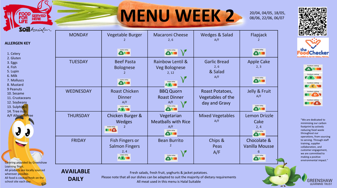 School Meal Menu Summer Term 2026