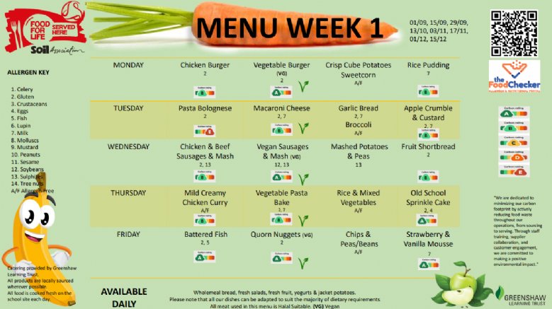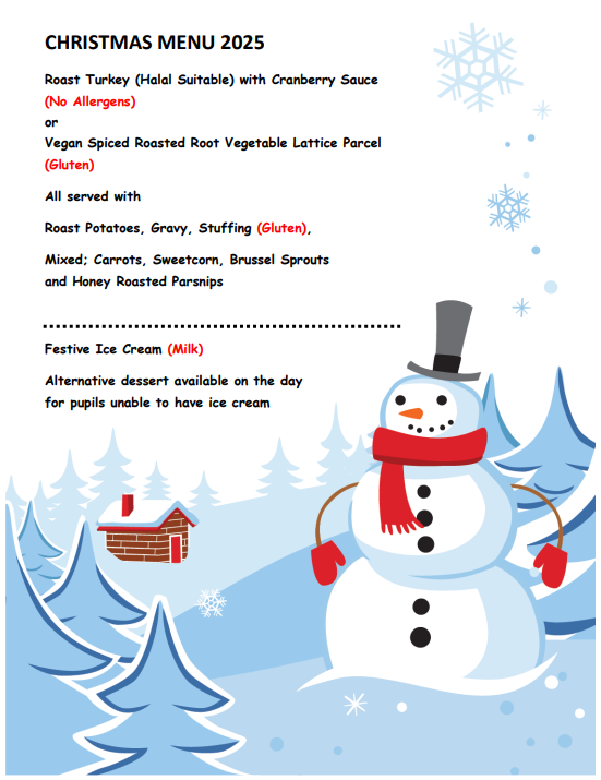 Click here to view and download the school dinner menu for the Autumn Term 2025