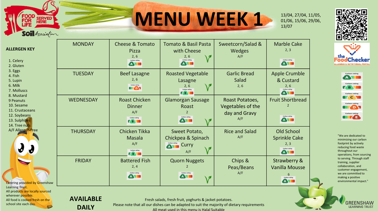 School Meal Menu Summer Term 2026